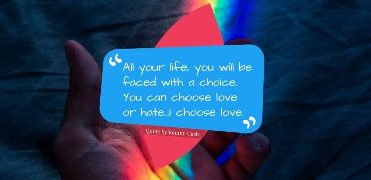 And we’re not alone! The legendary Johnny Cash reminds us to choose love over hate through his words of wisdom. Hatred only leads to negativity and destruction, while love can lead to happiness, compassion, and peace.
